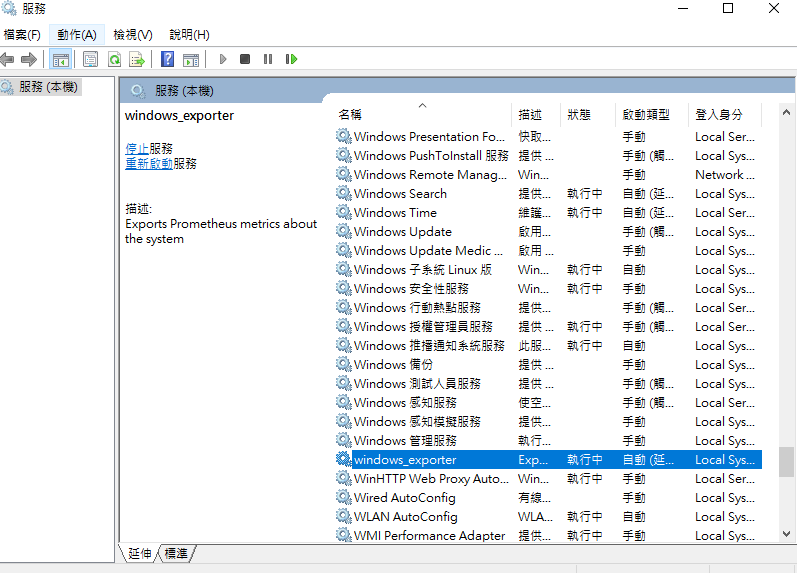 測試可以輸入 : http://localhost:9182/metrics 檢測是否真的 OK