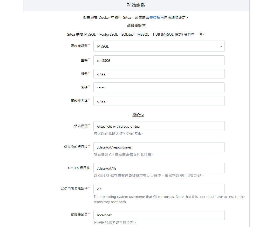 然後打開瀏覽器 → http://localhost:4000 就能看到 Gitea。